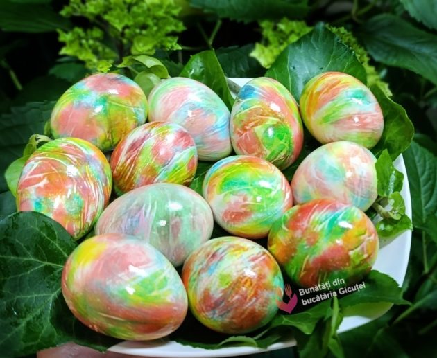Pe langa ouale rosii traditionale, am vopsit si cateva oua cu tehnica servetelului. Procedeul este