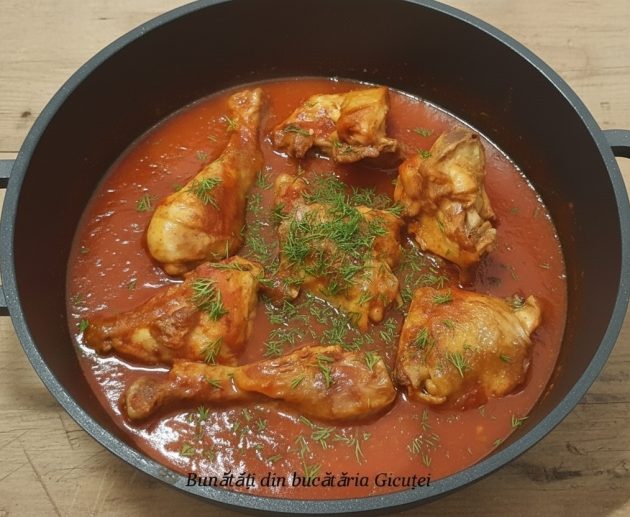 Puiul cu sos de rosii si usturoi la tigaie este un preparat extrem de usor