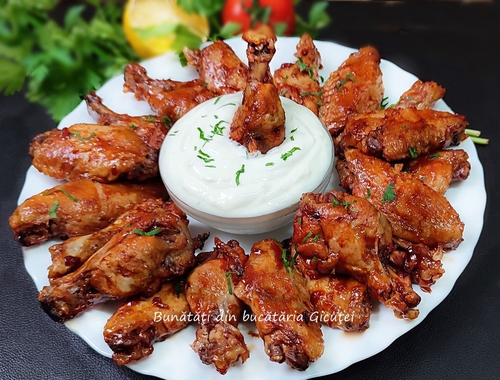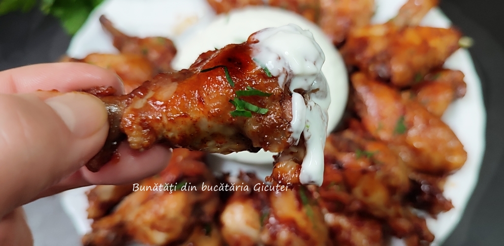 Duminica trecuta am pregatit aceste delicioase aripioare pentru masa de seara pe care le-am servit alaturi de un sos de iaurt si usturoi. Au iesit taare fragede, aromate si gustoase….este o reteta pe care sigur o voi repeta cat mai curand. Ne-am lins pe degete!