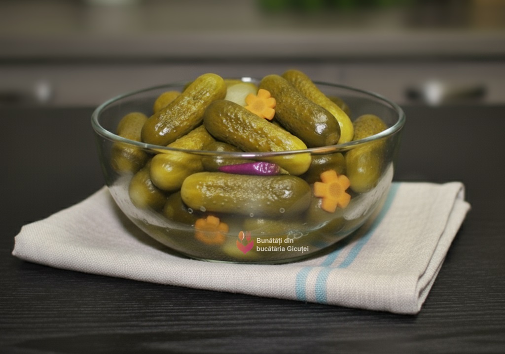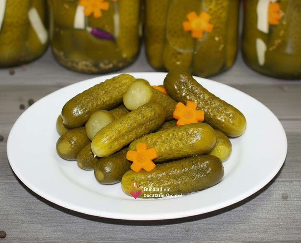Aceasta reteta de castraveti este cea mai sanatoasa si buna. Ca la orice muraturi, vom folosi legume proaspete, iar in cazul castravetilor, trebuie sa ii cumparam pe cei care au floare. Cel mai bine este sa ii punem la murat dupa data de 15 septembrie cand se mai racoreste.