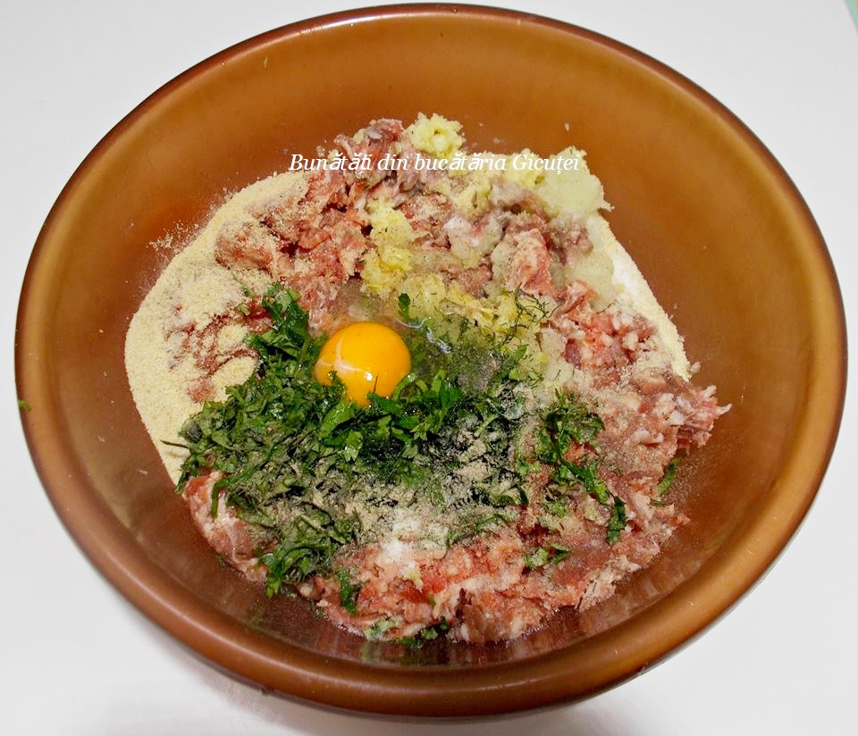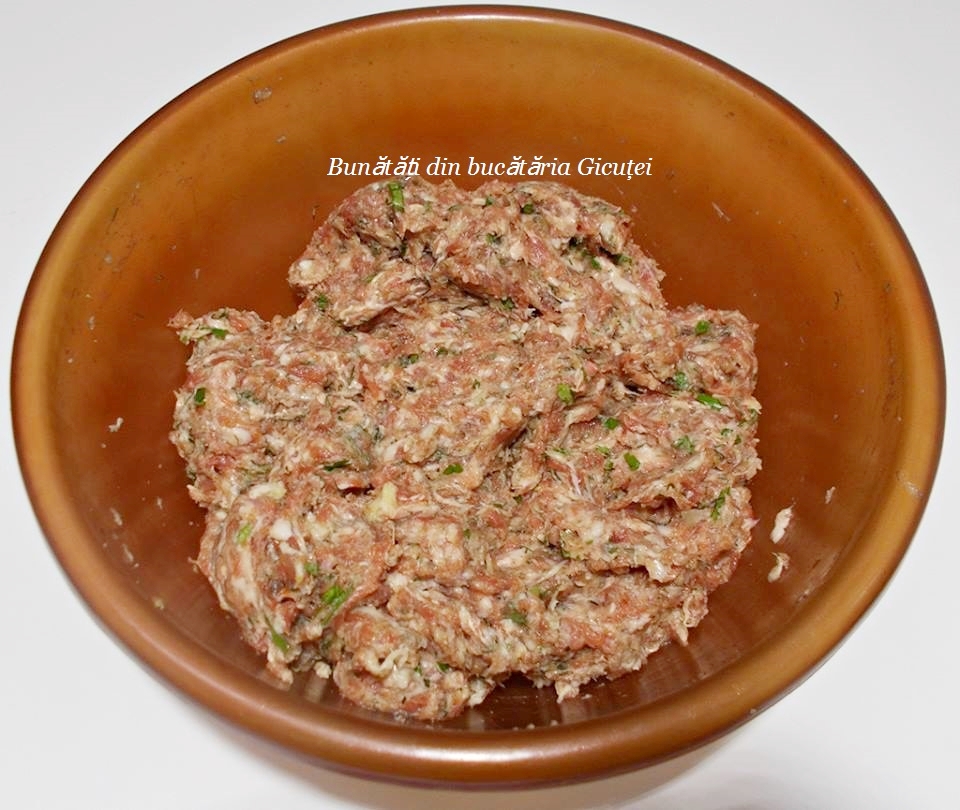 - 800 g carne tocata – am folosit amestec porc/vita
