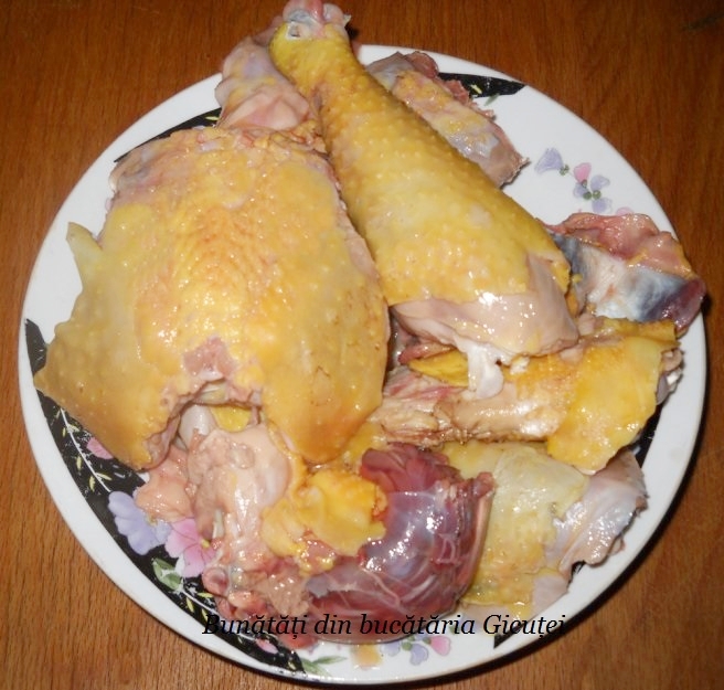 La orice ciorba cu carne vom folosi carne cu os cu tot. Eu am avut un cocos de curte, dar se poate folosi si carne de pasare din comert.