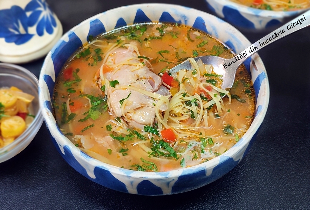 Ne plac ciorbele si supele, tare mult. Fie ca sunt cu carne sau numai din legume apropape niciodata nu ne lipsesc din frigider. De data aceasta am facut o ciorba tare gustoasa cu pasare de curte. Va invit mai jos ca sa cititi reteta si sa vedeti ce ingrediente am folosit.