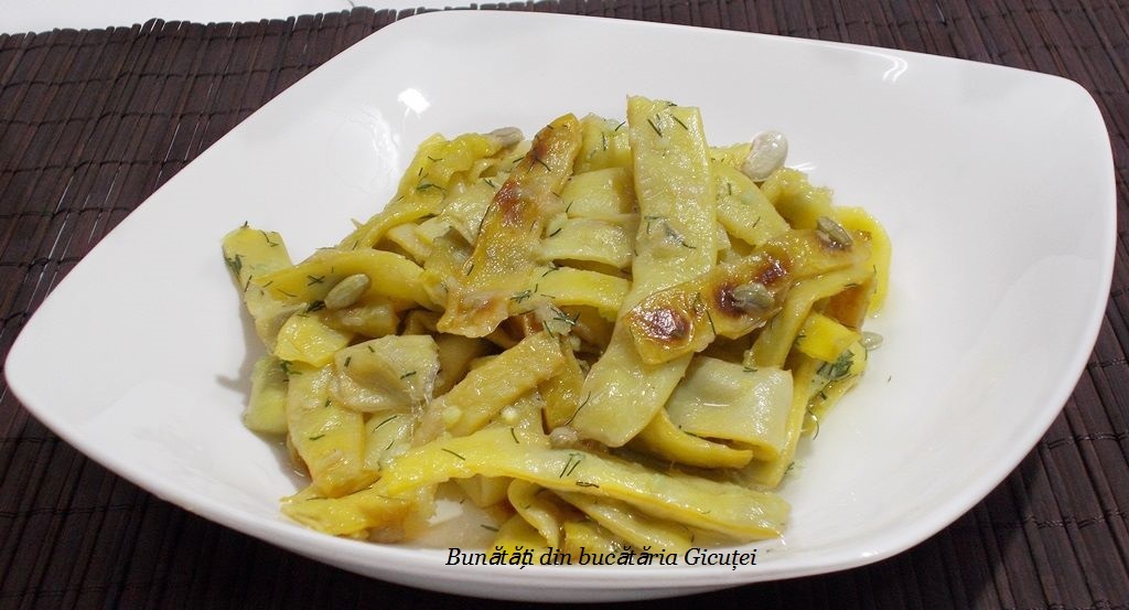 La acesta reteta eu am folosit pastai galbene late, dar se pot folosi si pastai subtiri(fideluta) sau pastai verzi.