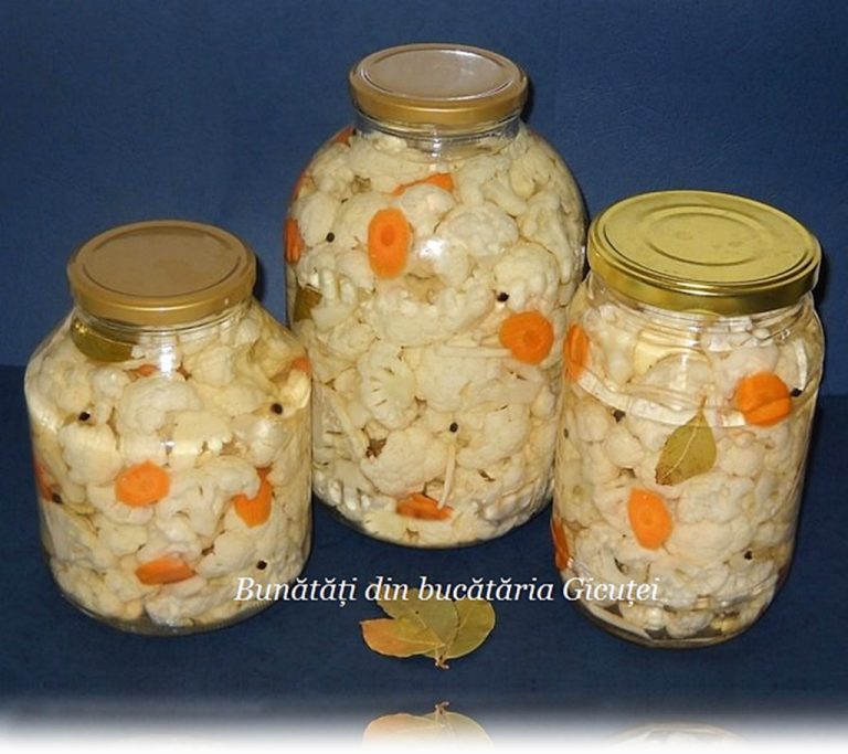 A doua zi, completăm cu conopida care ne-a rămas, deoarece legumele s-au mai tasat. Ca să ne asigurăm că legumele stau scufundate în saramură, putem să punem presatoare speciale sau stinghiuțe. Acum nu ne mai rămâne decât să așezăm borcanele în cămară.