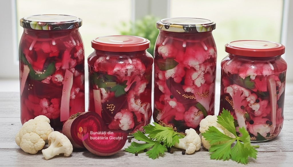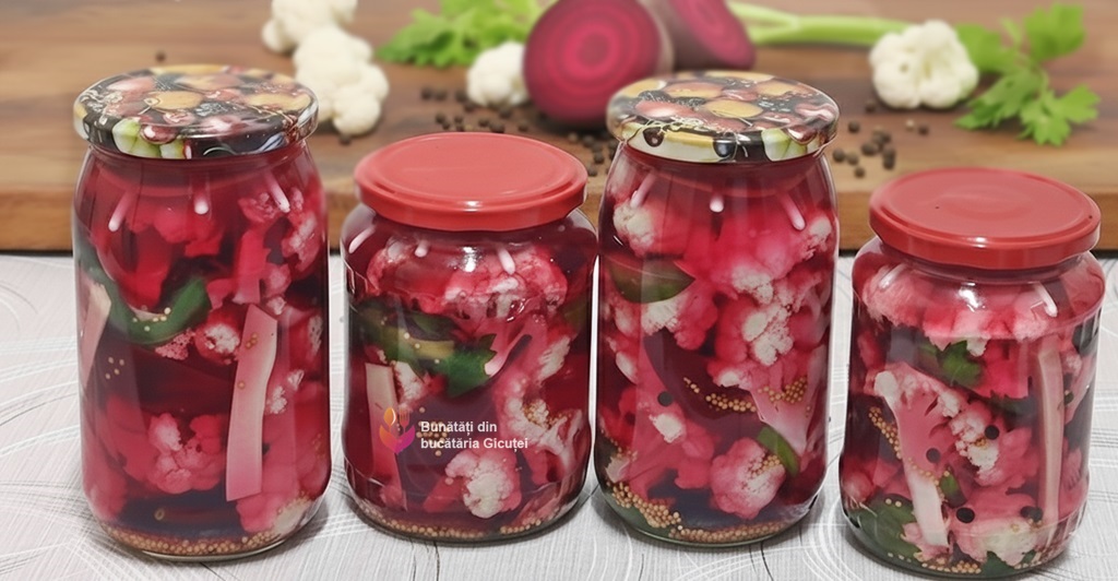 - Sfecla roșie din rețetă va accelera puțin procesul de murare și va da o culoare frumoasă conopidei.