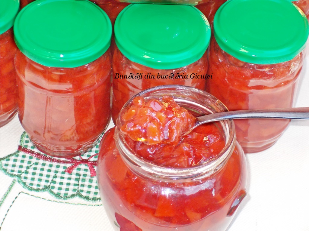 Update: In mod obisnuit, cand facem dulceturi, trebuie sa stergem tot timpul marginile interioare ale cratitei cu un burete nou imbibat in apa si stors bine si sa inaluram spuma care se formeaza deasupra….de data asta nu am facut-o, iar cu toate acestea dulceata mea a iesit grozav de buna si nu s-a zaharisit. Am mai avut un borcanel ramas cu dulceata facuta acum trei ani, ce-i drept dulceata s-a mai inchis la culoare, dar aroma si gustul au ramas la fel. Spor la facut bunatati!