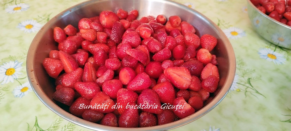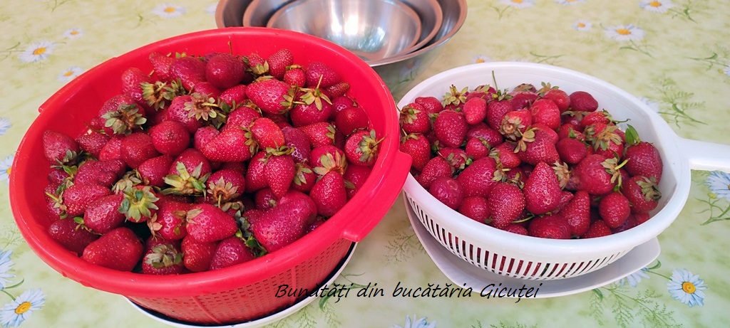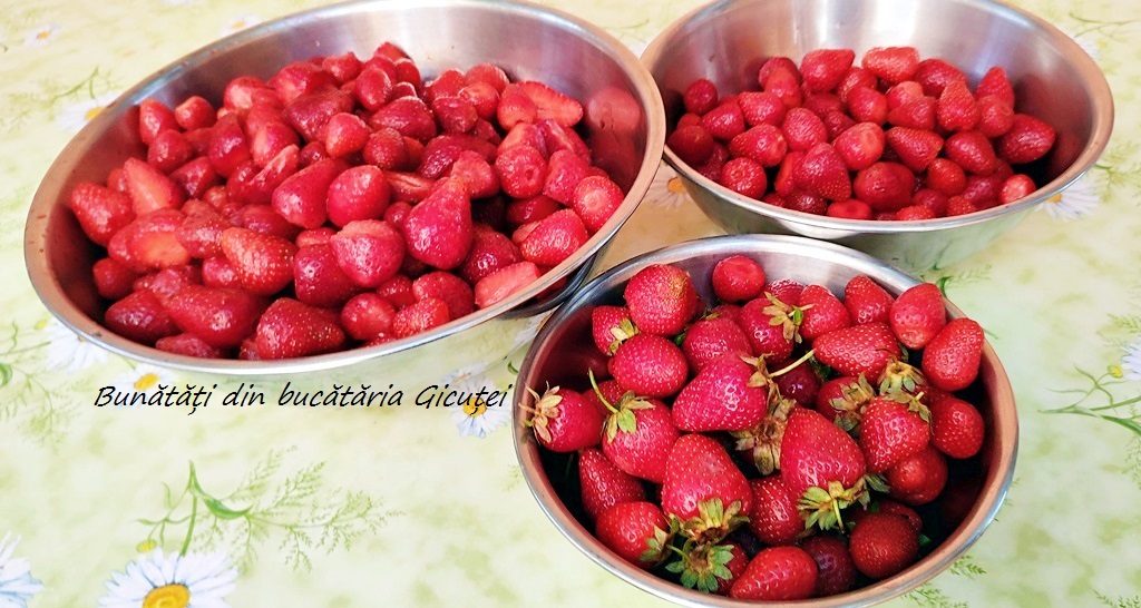 Luni( 5 iunie 2023) am gasit in piata capsuni romanesti, cu 7 lei/kg. Au fost aromate, dar unele mai aveau si urme de stricaciune. Asa ca m-am pus si le-am ales pe categorii. Pe cele de marimi diferite si cu urme de stricaciune le-am folosit la acest gem, din capsunile mai micute si sanatoase am facut cateva borcanele de compot, o parte le-am pus la o prajitura si mi-au mai ramas cateva pentru consum. Aici va prezint reteta de gem, o reteta clasica, 100% naturala.
