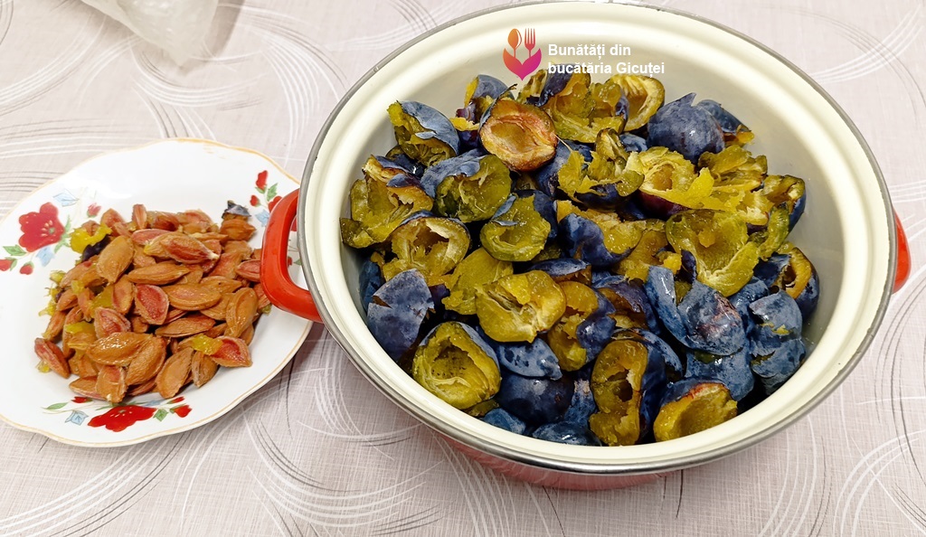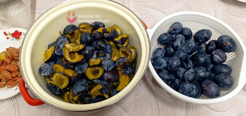 Spălăm prunele și le lăsăm la scurs, apoi le scoatem sâmburii. Prunele pe care le folosim trebuie să fie bine coapte și să se desprindă ușor de pe sâmbure.