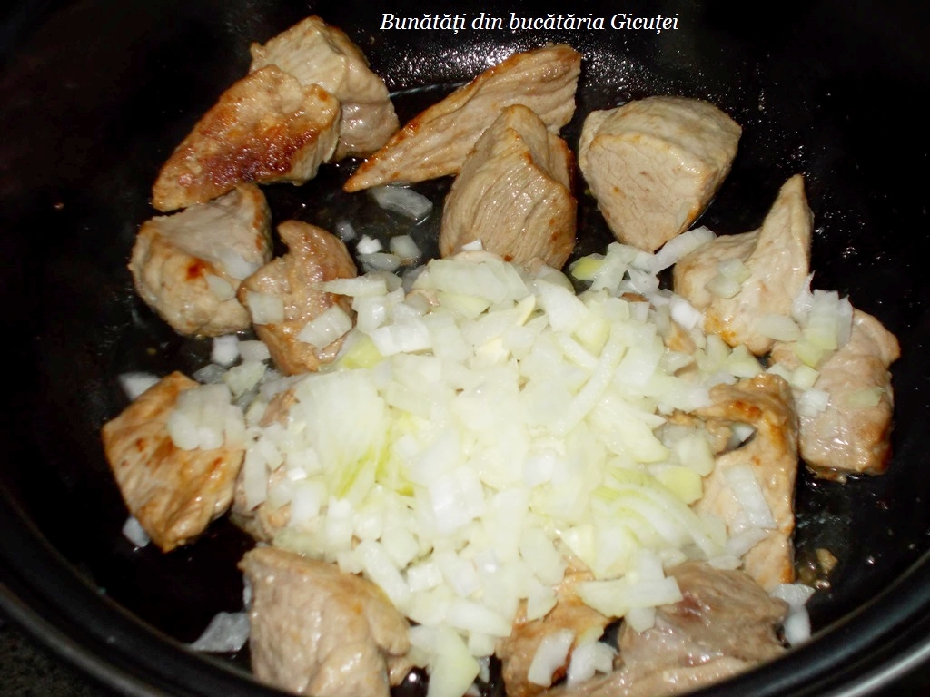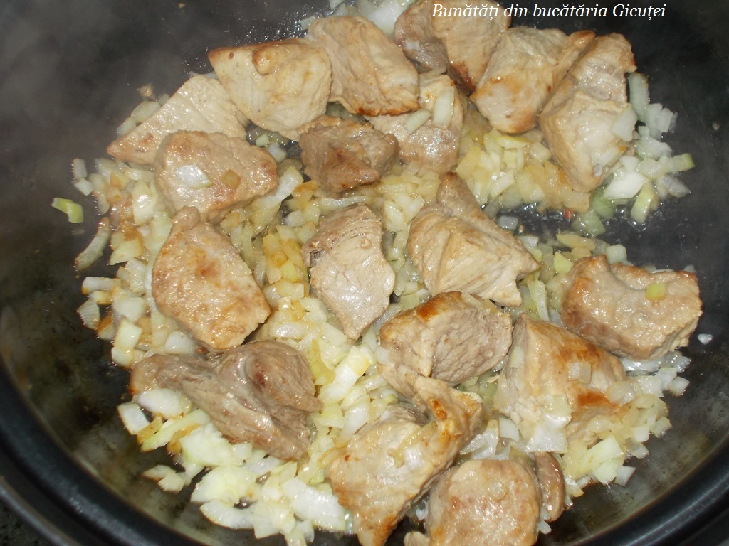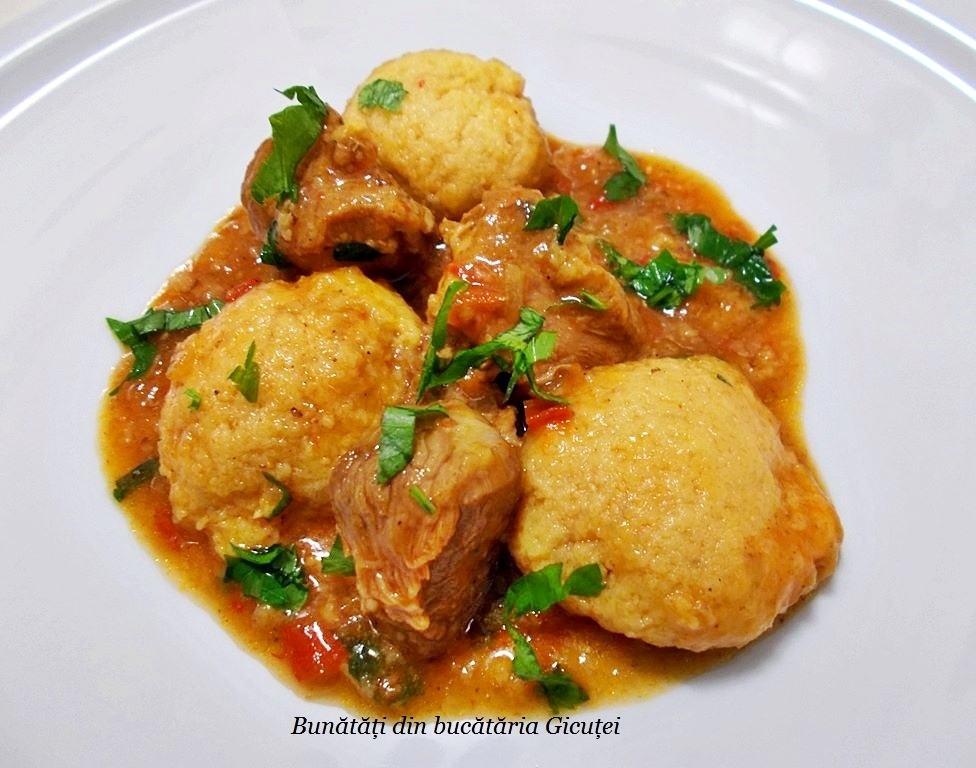 Mancare cu galuste si carne de porc este consistenta si tare buna. Carnea de porc se poate inlocui cu carne de pasare, orice varianta am alege ne va iesi un preparat delicios.