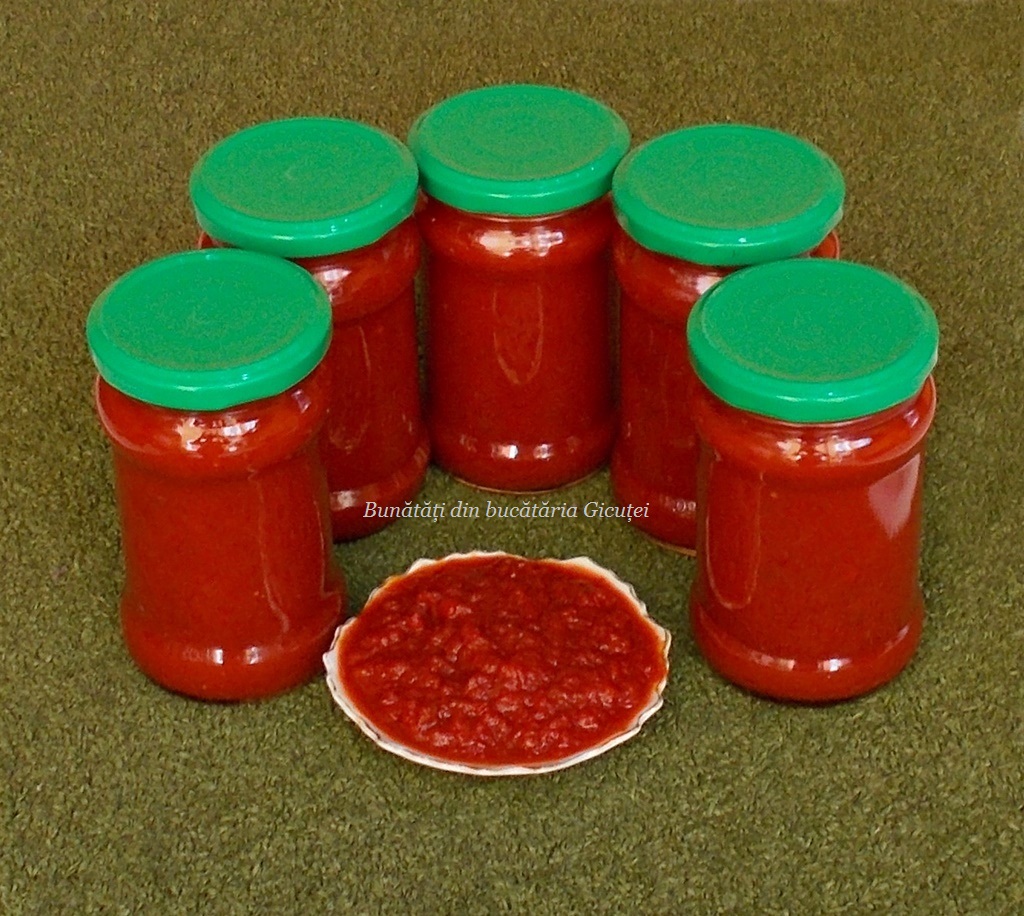 Cand este gata, punem pasta fierbinte in borcanele sterilizate. Pe masura ce le umplem le inchidem cu capace si le asezam cu gura in jos. Le acoperim cu o patura si le lasam sa se raceasca lent. A doua zi le depozitam la loc racoros(camara, beci). Daca spatiul de depozitare nu este unul racoros se pot steriliza borcanele umplute 35-40 de minute dupa primul clocot. La iarna tare bine ne va prinde.