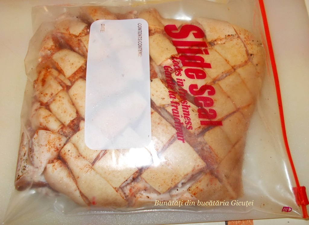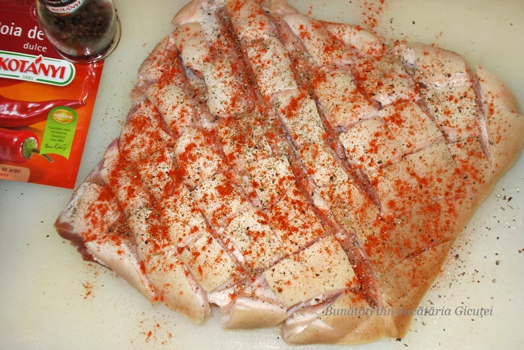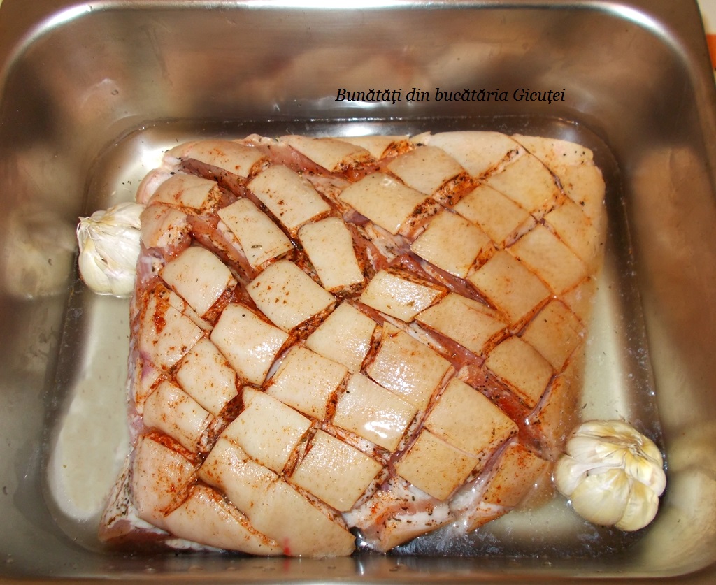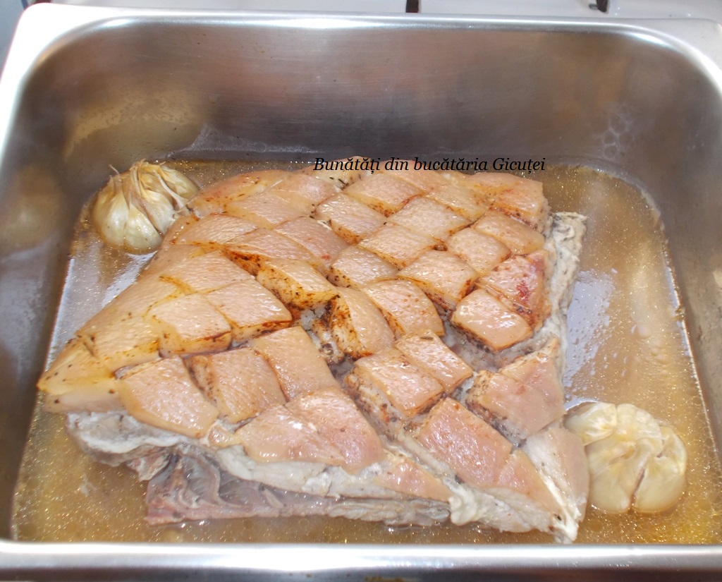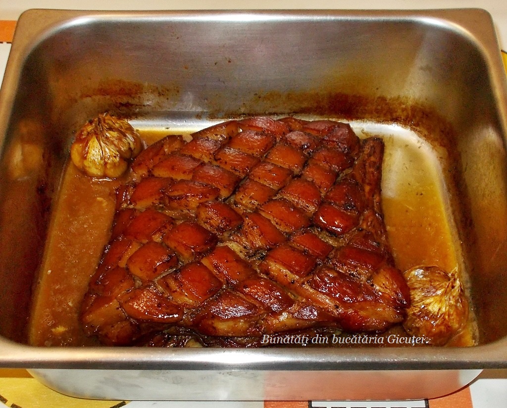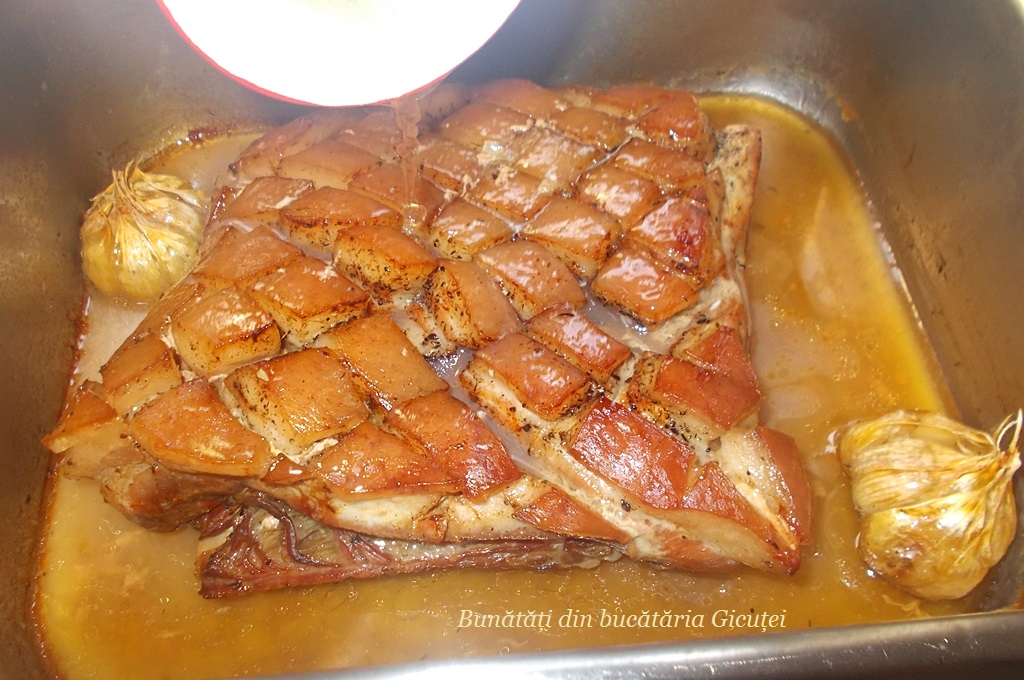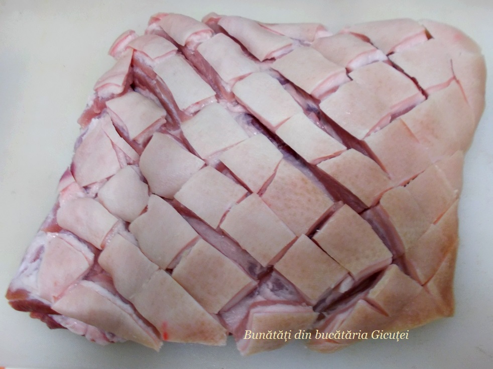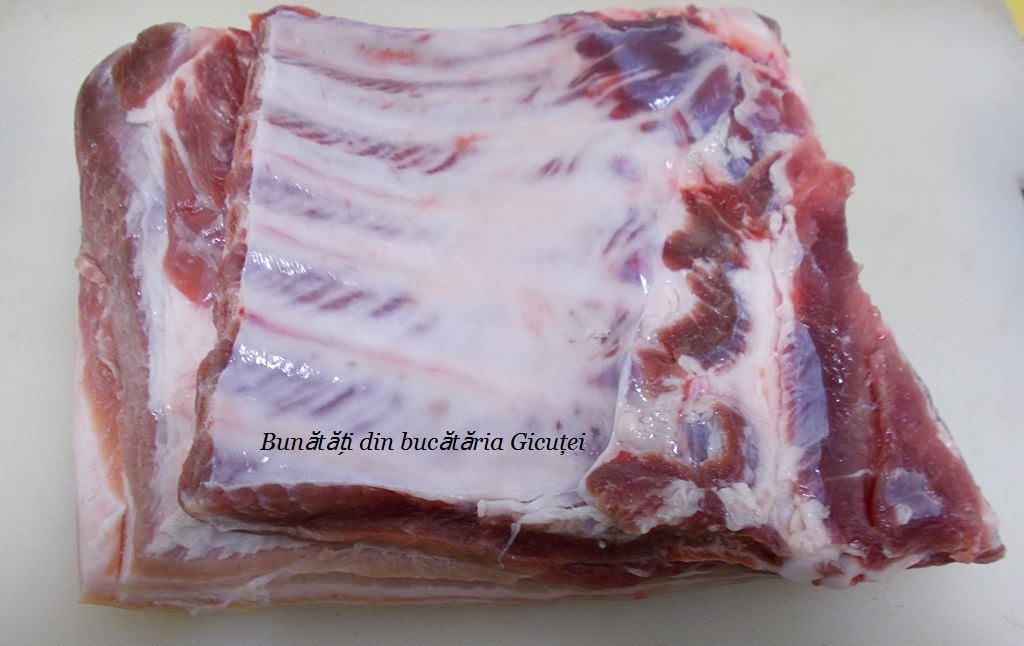 • o bucată piept de porc cu os (1,8 kg)