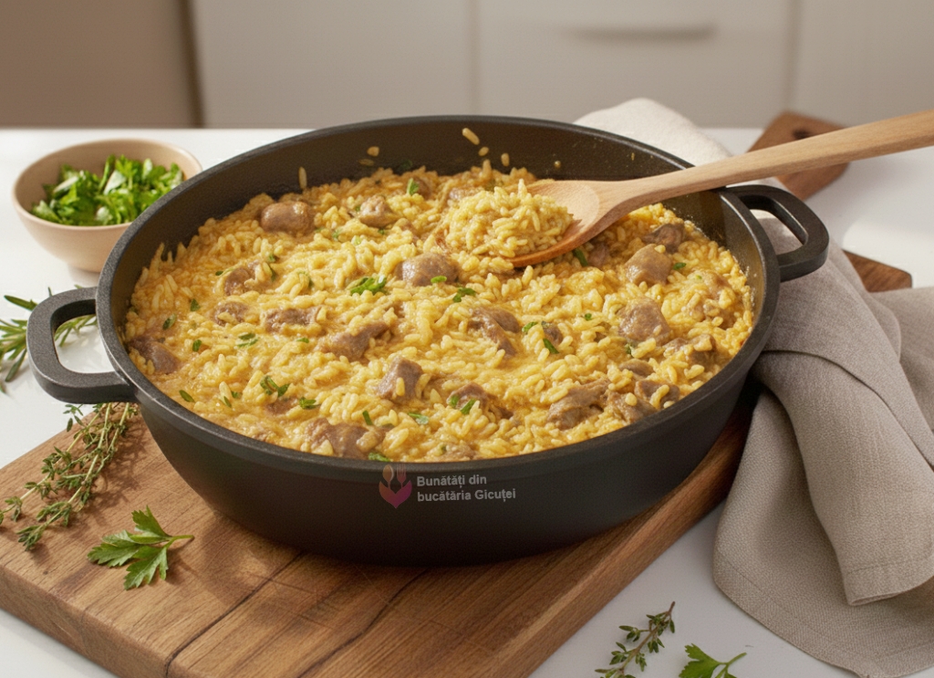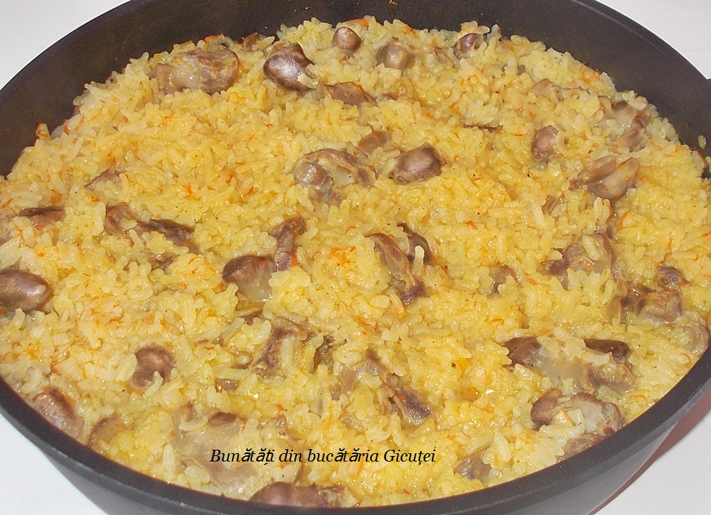 Ne plac inimile și pipotele. Le folosesc la tocănițe, le fac înăbușite cu ceapă și usturoi sau prăjite. De data asta le-am combinat cu orez… a ieșit ceva delicios