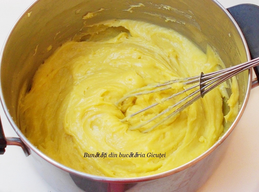 Mixam untul spuma si incorporam treptat crema racita. Dam crema la frigider pana la intrebuintare.