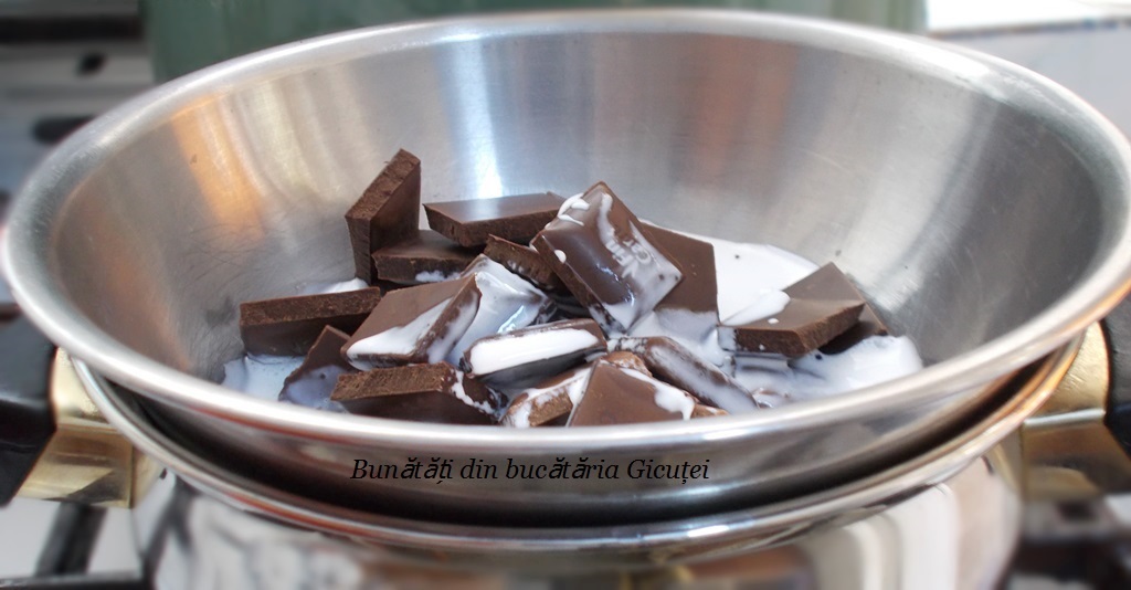 - 200 g ciocolata (am folosit 100 g cu lapte si 100 g cu 50%cacao)