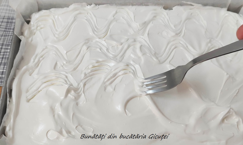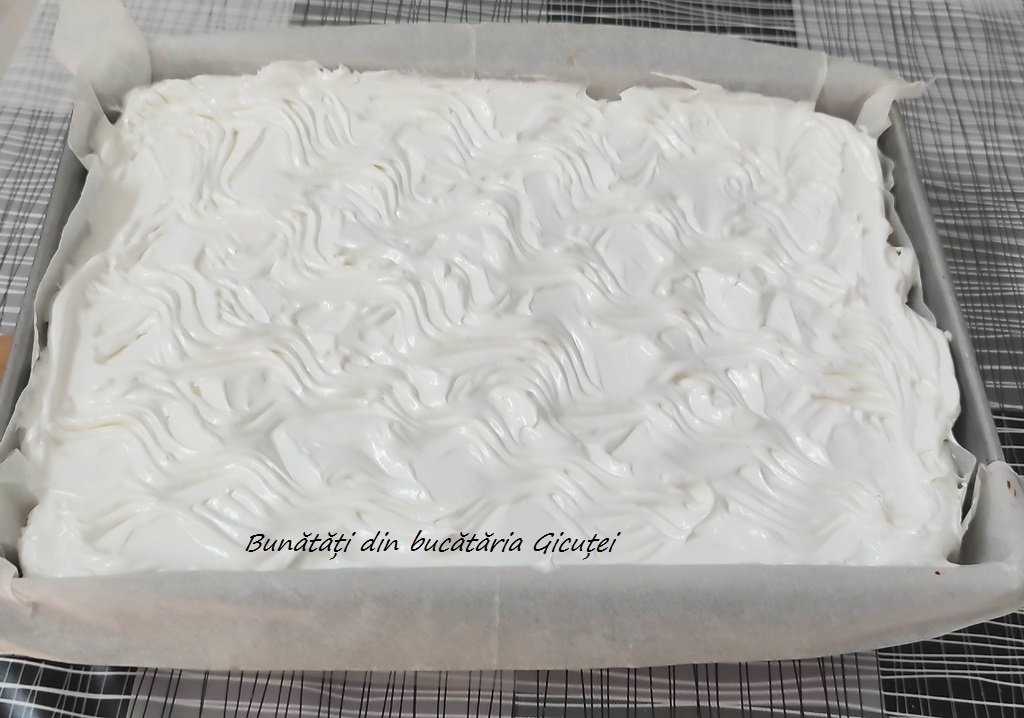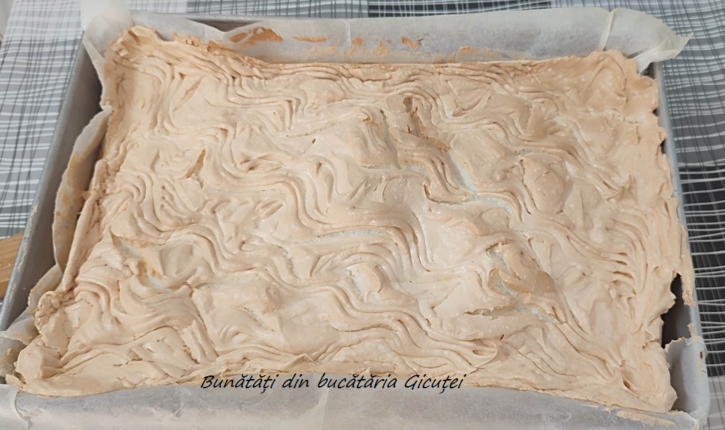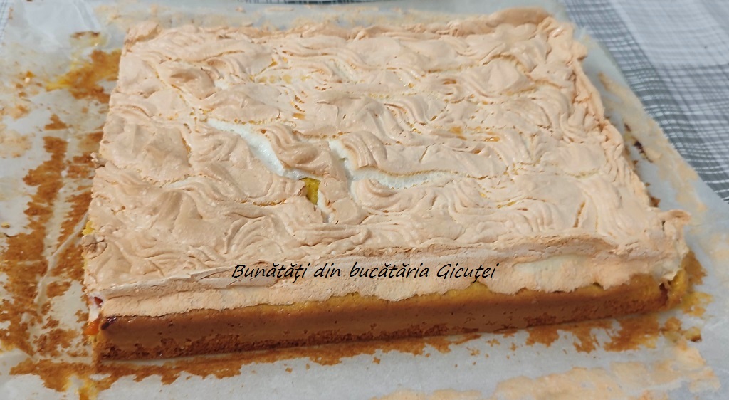 Reintroducem tava in cuptor pentru aproximativ 10-15 minute sau pana bezeaua se rumeneste usor deasupra.