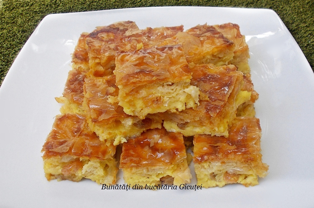 Prajitura greceasca cu foi rupte, cu iaurt, stafide si lamaie. Un desert rapid si bun, cu reusita garantata. Va recomand cu drag sa incercati aceasta reteta, este usor de facut si foarte gustoasa.