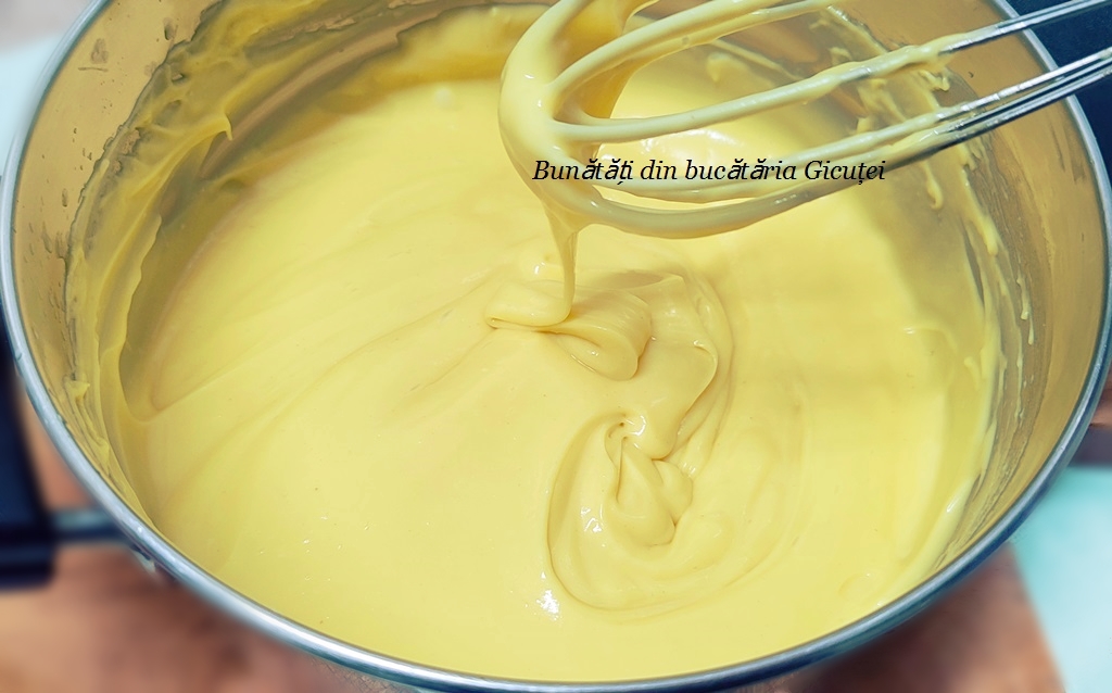Scoatem untul din frigider cu cateva ore inainte de prepararea cremei si il taiem in cubulete. Il lasam deoparte ca sa se inmoaie.
