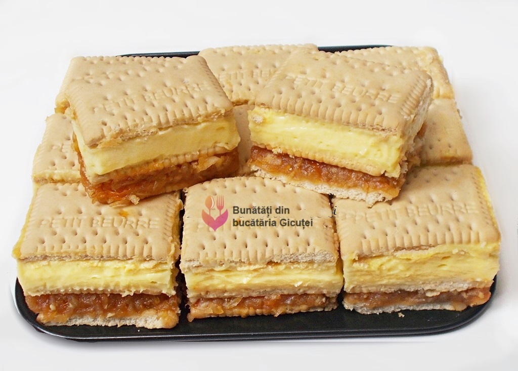 Iar aici gasiti reteta pentru PRAJITURA CU BISCUITI, MERE SI BUDINCA DE VANILIE.