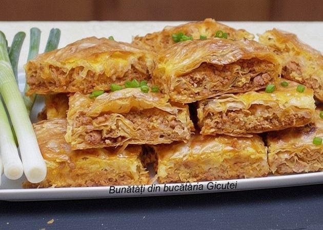 Această plăcintă este ușor de preparat și se poate consuma caldă, dar este bună și